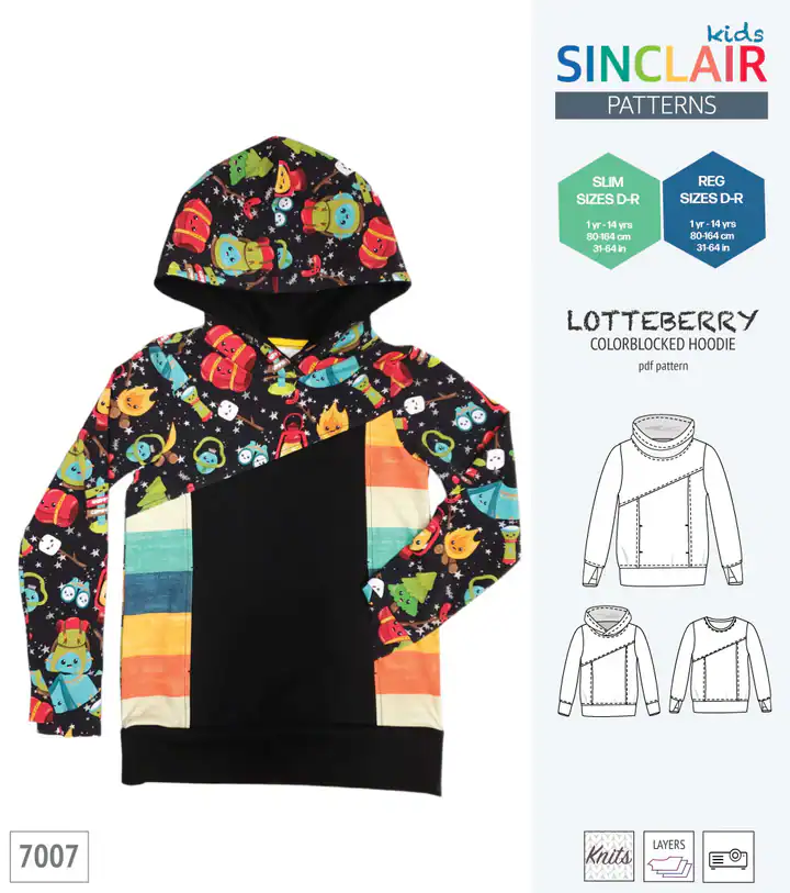 The Linberry hoodie and sweater from Sinclair Patterns has a stylish color-blocked design. Perfect scrap-buster and a great way to get a bit more color in your hoodie!