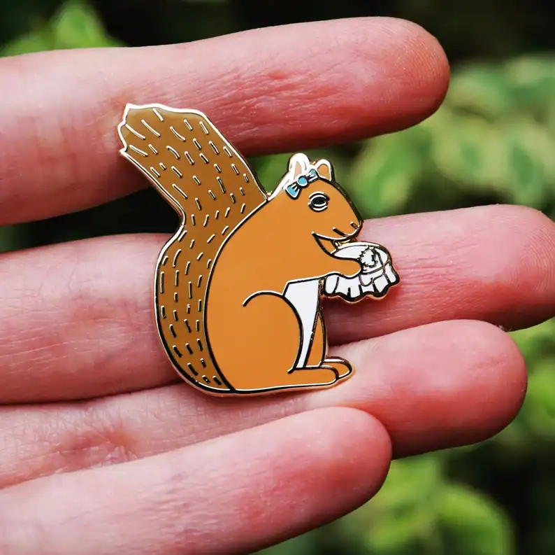 Right: If you love embroidery and squirrels, combine the two with the Sewing Squirrel pin from Hestia’s Nest.